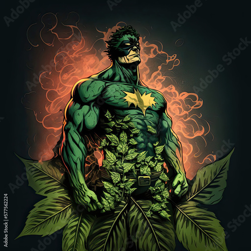 © Eric, Fototapeta premium Marijuana Superhero - AI Generated