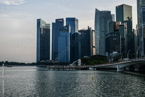 Fototapeta premium Marina Bay Waterfront in Singapore, featuring Marina Bay Sands, lotus-shaped...