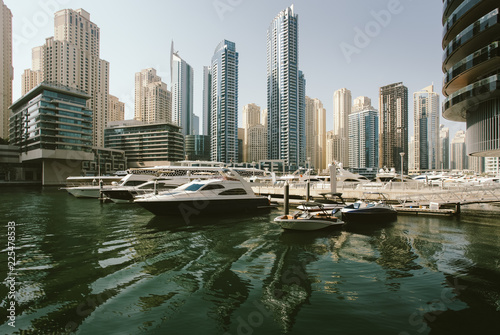 Fototapeta premium Marina Promenade w Dubaju, ZEA, Zjednoczone Emiraty Arabskie. Czyste,...