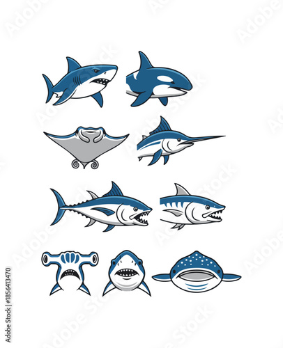 © Rokok, Obraz premium Marine animals set illustration vector design elements