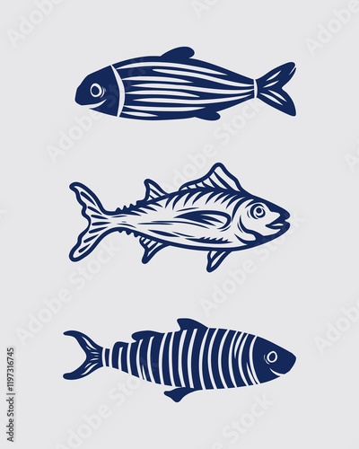 Fototapeta premium Marine Fish collection illustration clip art poster fabric textile wallpaper print art isolated