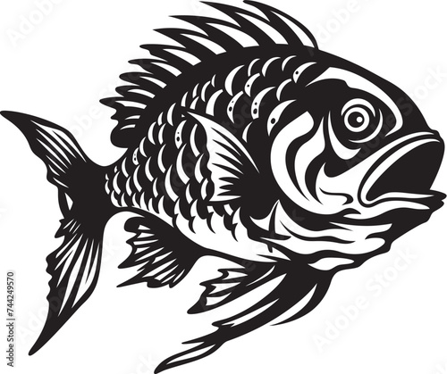 © BABBAN, Fototapeta premium Marine Majesty Tropical River Fish Vector Images in Black Inked Inspirations Black Vector Fish Sketches