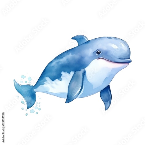 Fototapeta premium Marine whale watercolor illustration, marine animals clipart