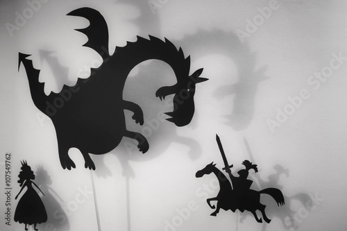 Fototapeta premium Marionetki cienia Smoka, Księżniczka i Rycerz