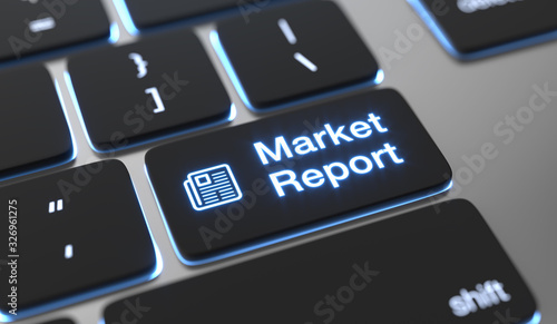 © md3d, Fototapeta premium Market report text written on keyboard button.