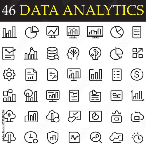 © Sameer, Fototapeta premium Market Research icon set collection. Data analytics, stock market, market analysis, data statistics, market growth icon. Simple glyph colour vector.
