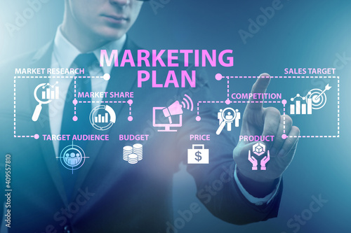 Fototapeta premium Marketing plan concept illustration with businessman