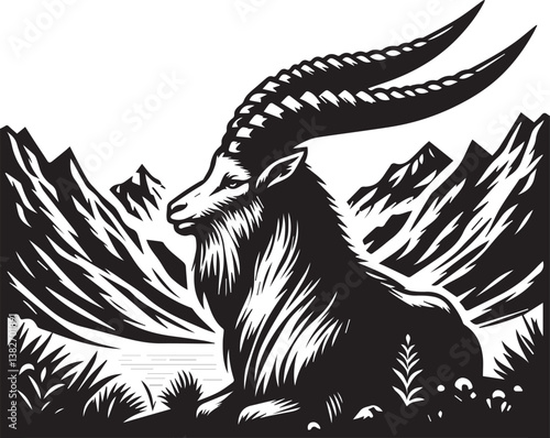 © Mubashar, Obraz premium Markhor vector in black and white