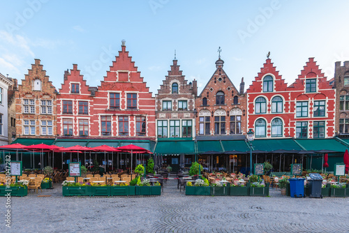 Obraz premium Markt, Market square, the central square abounds in gabled houses with colorful facades in Bruges, Belgium