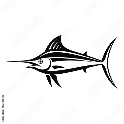 Fototapeta premium Marlin fish silhouette vector illustration, isolated on a white background.