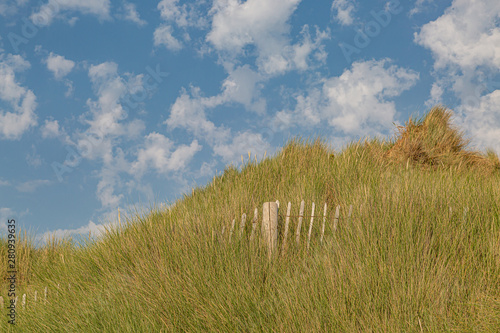 © lemanieh, Fototapeta premium Marram grass covered sand dunes at Formby in Merseyside, on a sunny summers day