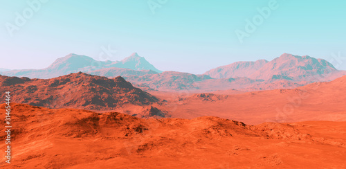 Fototapeta premium Mars landscape, 3d render of imaginary mars planet terrain
