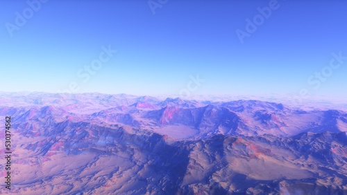 Fototapeta premium Mars like red planet, with arid landscape, rocky hills and mountains, for...