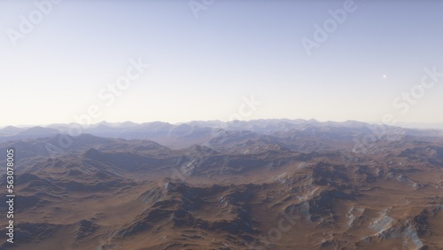 Naklejka premium Mars like red planet, with arid landscape, rocky hills and mountains, for...