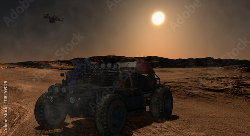 Fototapeta premium Mars Planet Science Fiction Transport Vehicle 3d Rendering