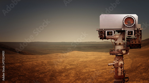 Fototapeta premium Mars Rover explores the red planet. Elements of this image furnished by NASA.