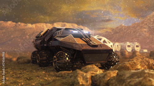 © unlimit3d, Obraz premium Mars rover Opportunity rolls into Endurance Crater. Animation.
