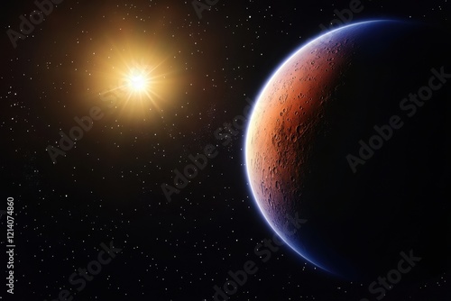 Obraz premium Mars sunrise, space, cosmic, starfield, planet, exploration, science fiction,...