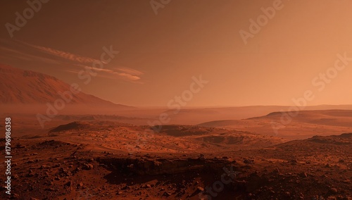 © -Quantum Pixels-, Naklejka premium Mars, the red planet with a dust-covered surface and atmosphere, highlighting erosion risk