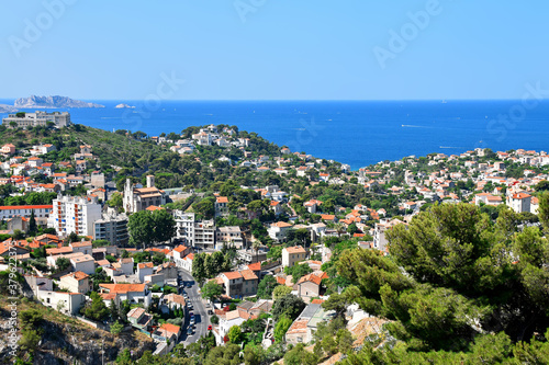 Naklejka premium Marseille coastal region, France. Top view from Notre Dame de la Garde
