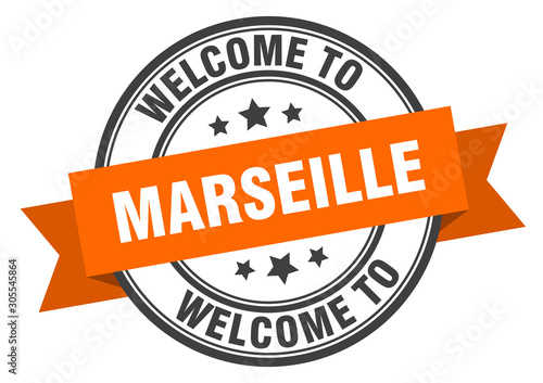Obraz premium Marseille stamp. welcome to Marseille orange sign