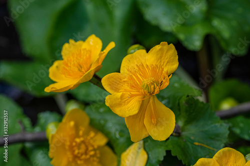 © Stefan, Fototapeta premium marsh marigold flower close up macro
