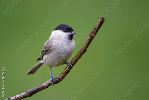 © David, Fototapeta premium Marsh Tit - Parus palustris, beautiful black capped perching bird from Old World forests and woodlands.