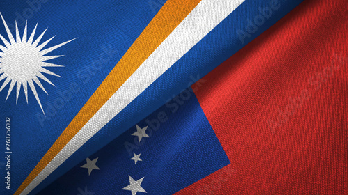 © Aleks Taurus, Fototapeta premium Marshall Islands and Samoa two flags textile cloth, fabric texture