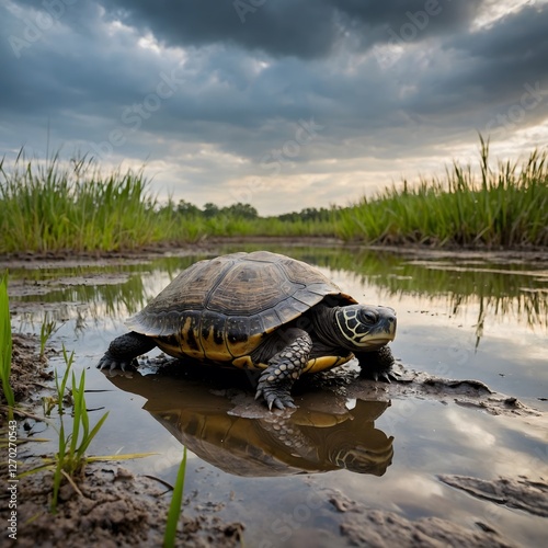 Fototapeta premium Marshland Quest: Discovering the Secrets of the Swamp with a Turtle