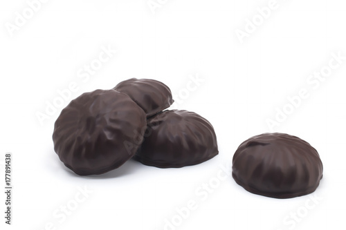 Fototapeta premium Marshmallow in chocolate on a white background