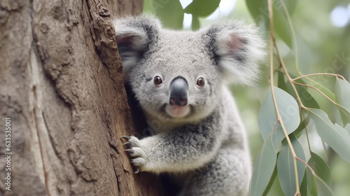 Obraz premium Marsupial koala cute fur close up outdoors looking tree background