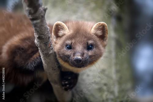 © byrdyak, Fototapeta premium Marten on a branch in winter