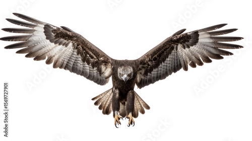 Obraz premium Martial Eagle with Spread Wings Flying - Majestic martial eagle soaring with wings fully extended on transparent background