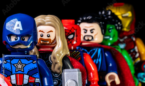 © Klochkov, Naklejka premium Marvel Captain America, Thor, Spider-Man, Doctor Strange, Hulk and Iron Man on a black background. Marvel's Avengers closeup