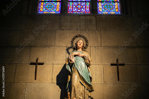 © BrookelynnBliss, Fototapeta premium Mary Statue inside The Good Shepherd of San Sebastian Cathedral in Spain