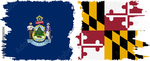 Obraz premium Maryland and Maine states grunge brush flags connection, vector