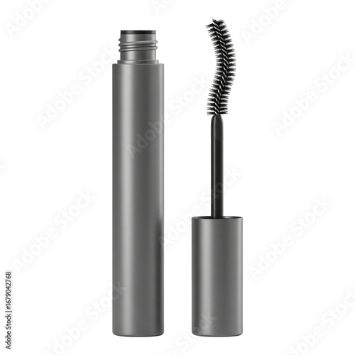 Fototapeta premium Mascara tube and wand isolated on transparent background