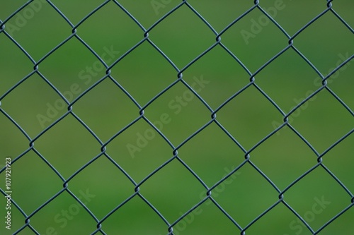 Fototapeta premium Maschendrahtzaun mit grünem Hintergrund