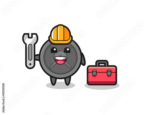 Fototapeta premium Mascot cartoon of barbell plate as a mechanic