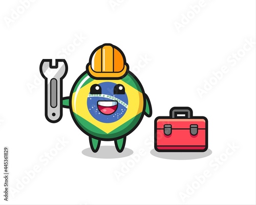 © heriyusuf, Fototapeta premium Mascot cartoon of brazil flag badge as a mechanic