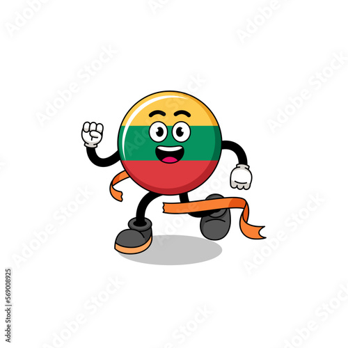 Fototapeta premium Mascot cartoon of lithuania flag running on finish line