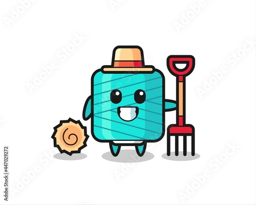 Fototapeta premium Mascot character of yarn spool as a farmer