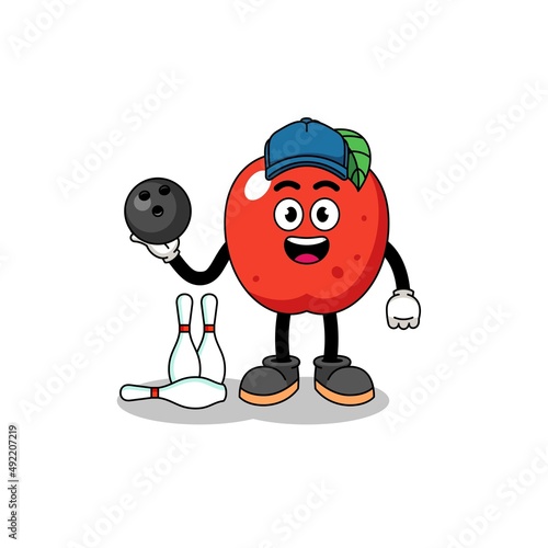 Obraz premium Mascot of apple as a bowling player