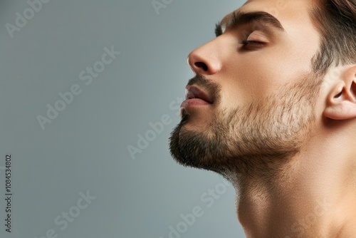 Fototapeta premium Masculine man feeling handsome after spa treatment photo.