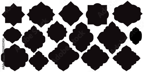 © Feoktistova, Fototapeta premium Mashrabiya collection.Arabic window and islamic doors frame shape set. Oriental architecture elements.
