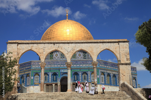 © Ahmet, Fototapeta premium Masjid Aksa Mosque is located in the city of Jerusalem. Mousque of Al-aqsa (Dome of the Rock) in Old Town. There are many historical buildings in the courtyard of Masjid Aksa Mosque.