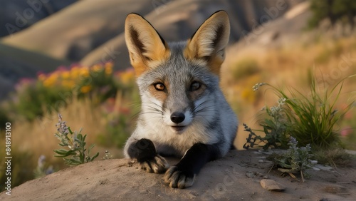 © Abdulla, Obraz premium Masked Mischief: A Playful Swift Fox Close-Up