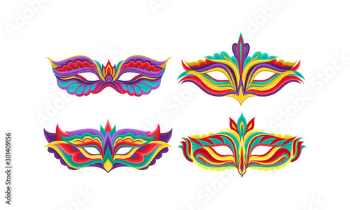 Fototapeta premium Masquerade Masks or Carnival Masque with Colorful Ornate Vector Set