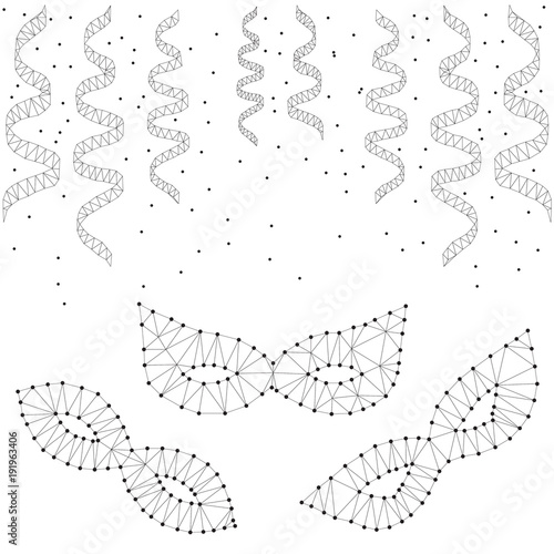 Obraz premium Masquerade masks, streamers, polygon, black-white