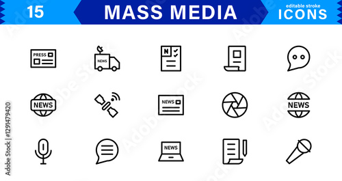 Fototapeta premium Mass Media Icon Set. High-Quality Vector Icons for Journalism, Broadcasting,...
